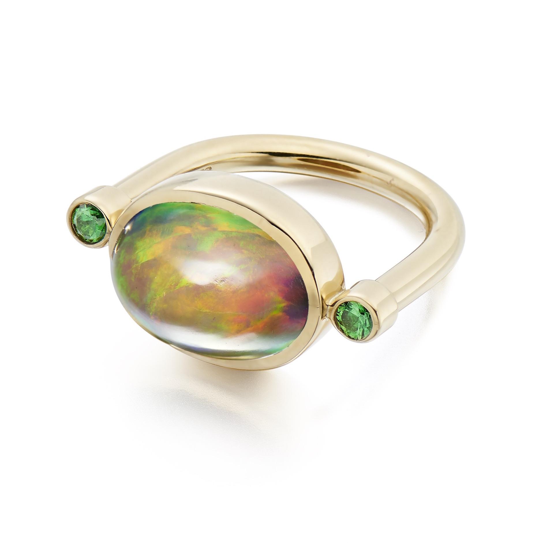 Ethiopian brown Opal and Tsavorite Garnets in 18 carat gold.