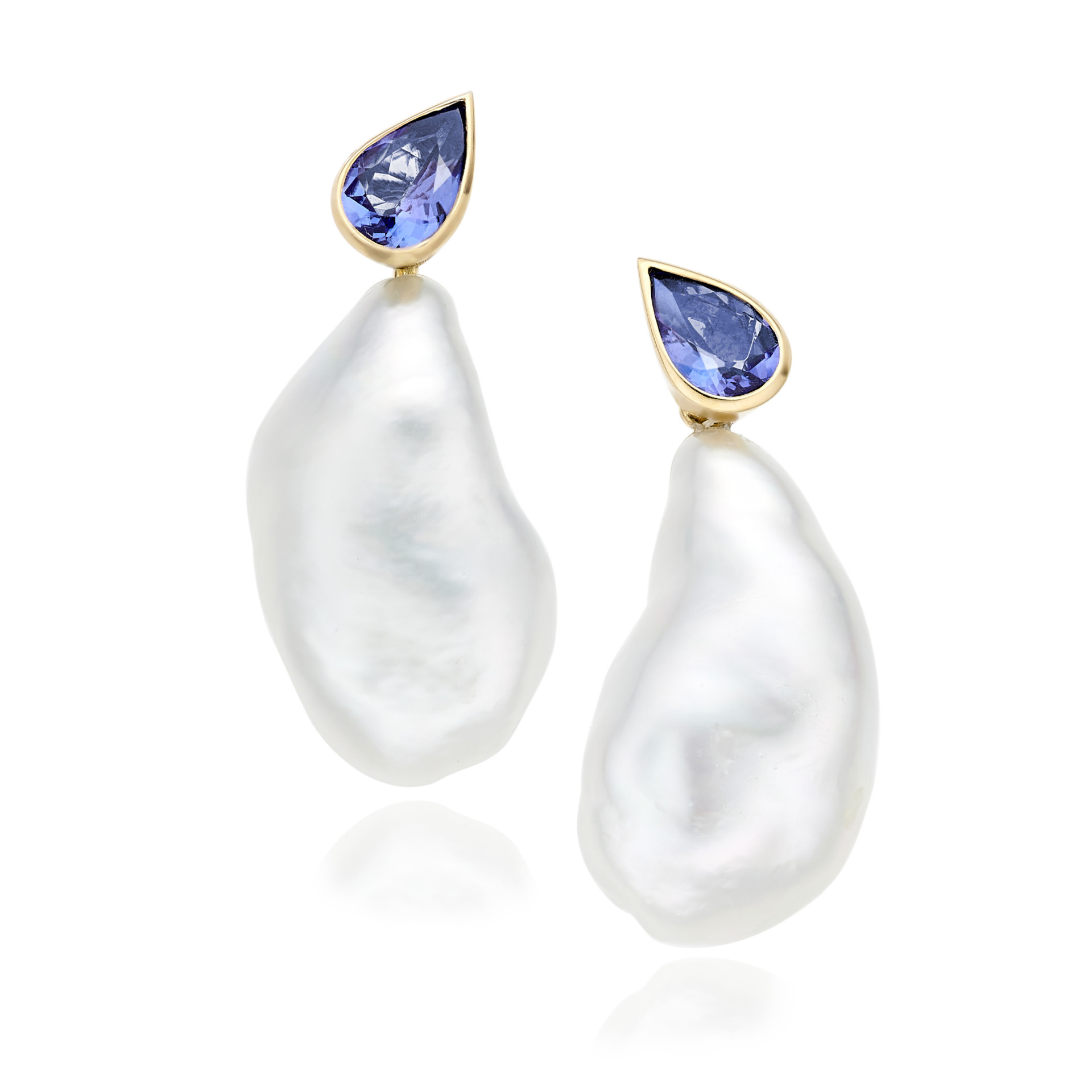Tanzanite and baroque South Sea Pearls in 18 carat gold.
